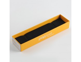 此款手表包裝選用黑卡紙裱膠胚,黑卡紙是特種紙的一種,其表面平整光滑,挺度好,拉力好,耐破度高等。手表盒設計整體選用黑色作為包裝盒主打色,醒目燙金LOGO顯居其中,盒子邊沿白色直線條,簡單,大方。一個好的手表包裝設計會給人一種一見傾心的感覺,想定制高檔手表盒歡迎致電廣州駿業(yè)包裝。