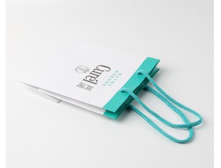 這個紙袋是設計也比較簡潔,品牌名和logo雖然沒有用什么燙金或者燙銀的工藝,但是因為排版設計有了著重點,所以就算只是用CMYK四色彩印的方式呈現(xiàn),它也能凸顯品牌質感。