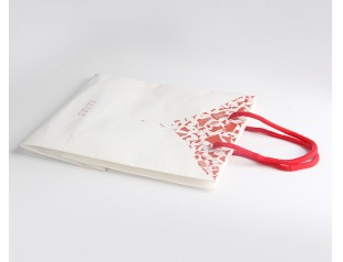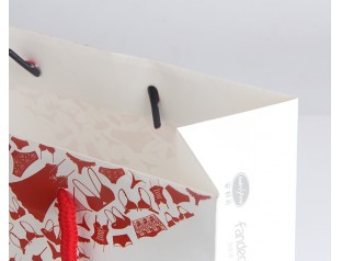 此款紙袋設計選用了250g單銅紙,雙色印刷,過光膠,搭配尼龍圓繩的手提繩。服裝紙袋設計,以白色為主打色,搭配些許紅色圖案,和紅色的尼龍圓繩,白色和紅色的經(jīng)典搭配讓氣氛顯得更加的優(yōu)雅廣州駿業(yè)紙袋定做采用優(yōu)良材質(zhì),流程機械化與人工的結(jié)合,量身定制增值型的手提紙袋。