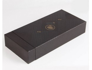 這個(gè)禮品盒定制選用的材質(zhì)是1000可白板紙為內(nèi)紙,裱紙則是雙銅紙,盒型是抽屜盒,盒身覆啞膠,看起來(lái)高貴神秘;可以看到這個(gè)禮品盒的表面布滿了用uv印刷出來(lái)的文字,在不同的角度可以看到不一樣的效果,這也是防偽的一種方法;盒子的logo采用的是燙金工藝,金燦燦的字體往往能讓人印象深刻,同時(shí)也凸顯了品牌質(zhì)感。